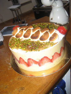 In pastry, we worked with milk chocolate, making praline and muscadine truffles. I still need to work on tempering, the process of melting chocolate, pouring it on the counter and playing with it to cool it to a precise temperature, then reheating it to some other precise temperature. Because I did the tempering incorrectly, my chocolates weren't as shiny as they could have been. Luckily we had Chef Walter, one of the nicest chefs at school. When he walked in the room, our tense class gave a huge sigh of relief and we had a very relaxed day. No one was even bothered when the power went out and we dipped chocolates in the dark for 20 minutes.